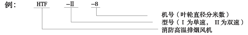 注: HTF型可根據需要制成消音型(進出風端加置專用消聲器) ;表示方法: 機號后面加字母“X”。HTF型均可制成屋頂式,表示方法:機號后面加字母“W”