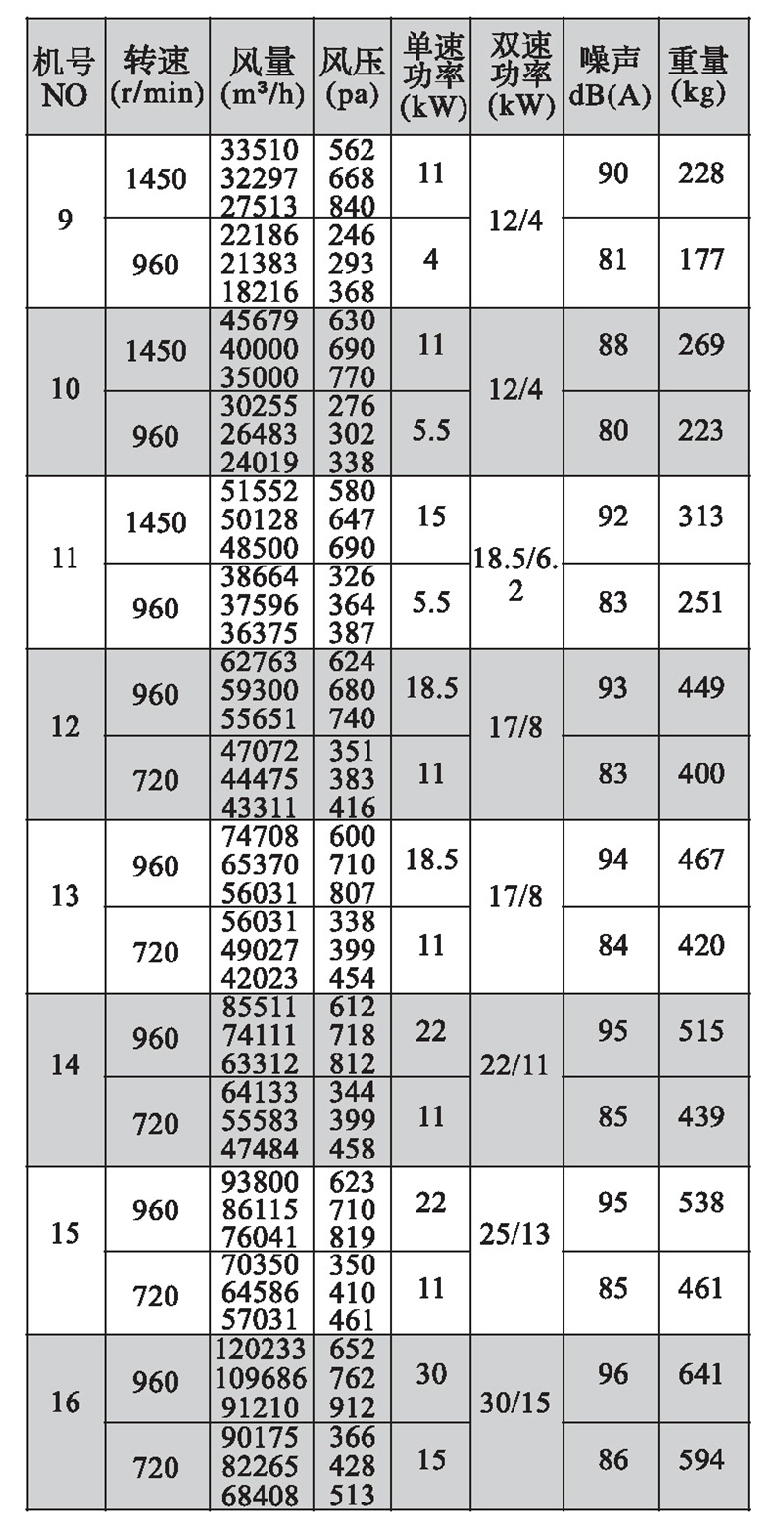 注:雙速風機重量參考同號中高速風機的重量。