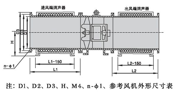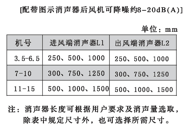 五、HTF型風機配帶消聲器外形尺寸表