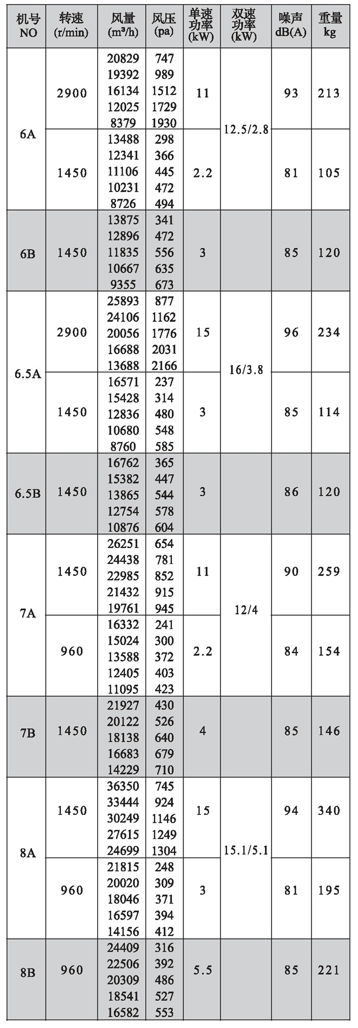 注:雙速風機重量參考同號中高速風機的重量。